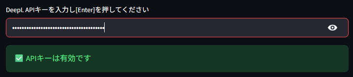3.無料版DeepLのAPIキーを入力し、[Enter]を押します。